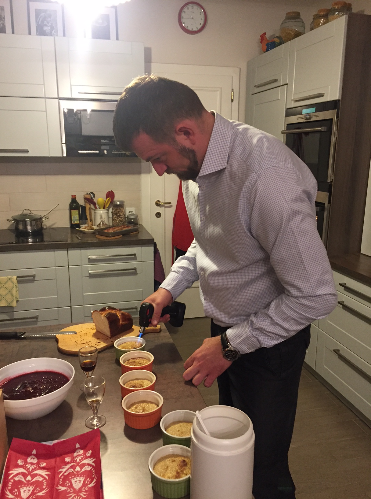 Pirított kalács kacsamáj créme brulée-vel és hagyma lekvárral