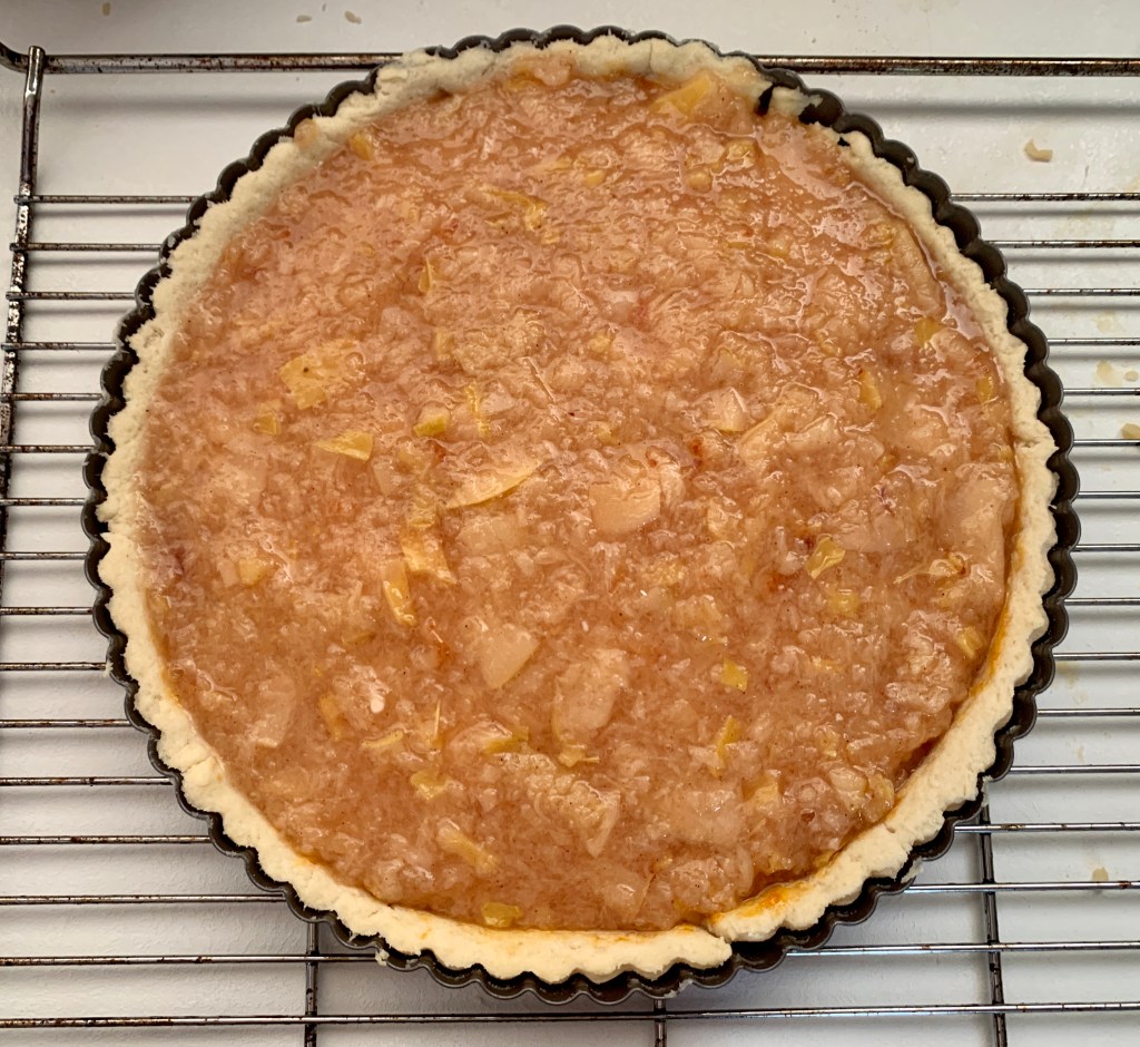 A lisztet átszitáltam egy tálba, és hozzá adtam a hideg zsírt. Összemorzsoltam. Aztán hozzá adtam gyorsan a többi hozzávalót. A klasszikus, tankönyv szerinti 3:2:1 (liszt, zsiradék, cukor) arányhoz nekem még hiányzott a tésztából a tojás, így tettem bele egyet. A tésztát összegyúrtam gyorsan kézzel, majd a hűtőbe tettem egy fél órára. Ez alatt elkészítettem a tölteléket.