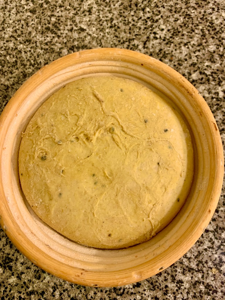 A tésztát veknire formázom, és konyharuhával kibélelt, kilisztezett szakajtóba teszem körülbelül 1 órára. Az utolsó 10 percben az ujjpróbával figyelem, hogy eltaláljam a tökéletesen megkelt állapotot.