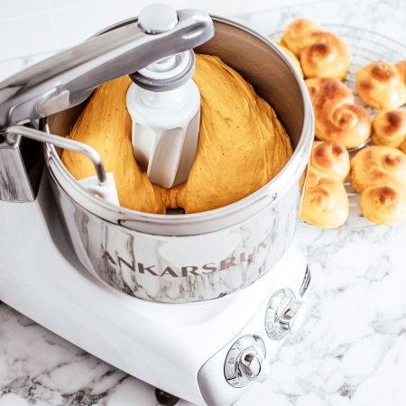 Dagasztáshoz, tésztakészítéshez és daráláshoz mindig az Ankarsrum Assistent gépet használom. Ma indult a karácsonyi akció, minden ilyen dagasztógép vásárlás mellé Péklány könyvet adnak ajándékba ezen az oldalon. A könyvemben nagyon sok kovászos kenyér receptet és a hozzájuk kapcsolódó sütési praktikákat és QR kóddal leolvasható videókat találtok (formázás, vágás, fonás, stb.).