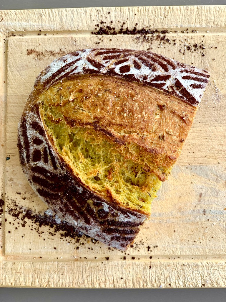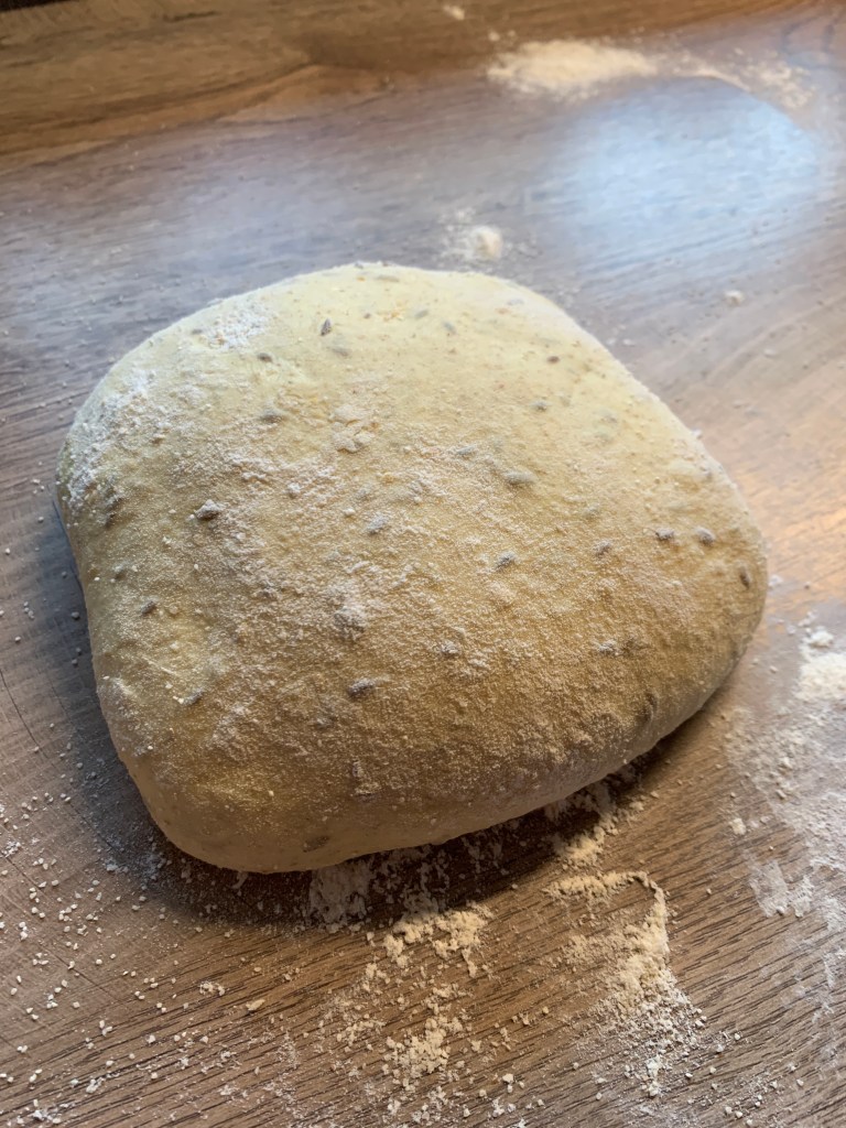 Míg a pékség január első két hetében zárva volt, minden nap sütöttem. Kísérleteztem a félbarnákkal (leírtam a könyvemben, hogy miért mindig a félbarna az alap mindenhez), de volt egy nap, amikor olyan ebédet főztem, amihez nagyon passzolt volna egy jó kis karakteres indiai fűszerezésű kenyér.