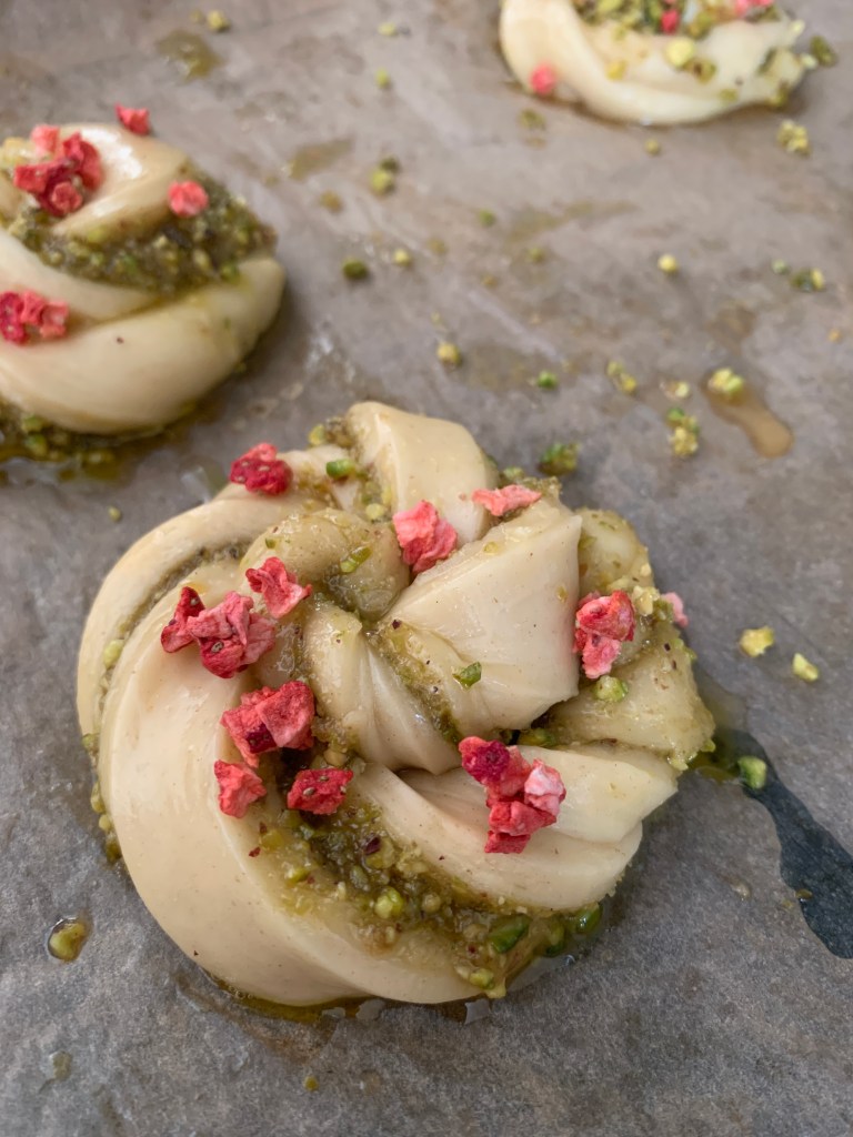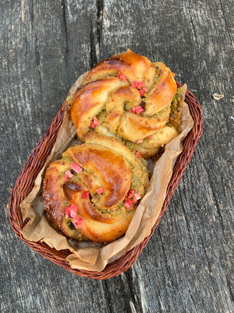 Én először az élesztős tészta programon dagasztottam kelt tésztát, amiből pisztáciás brióst fontam. Ahogy írtam, csodálatosan kidolgozott tésztát varázsolt nekem a gép. És ami szintén nagyon szimpatikus, ha a dagasztás leáll és én nem vagyok ott, automatikusan elindul egy 20 perces első kelesztés.