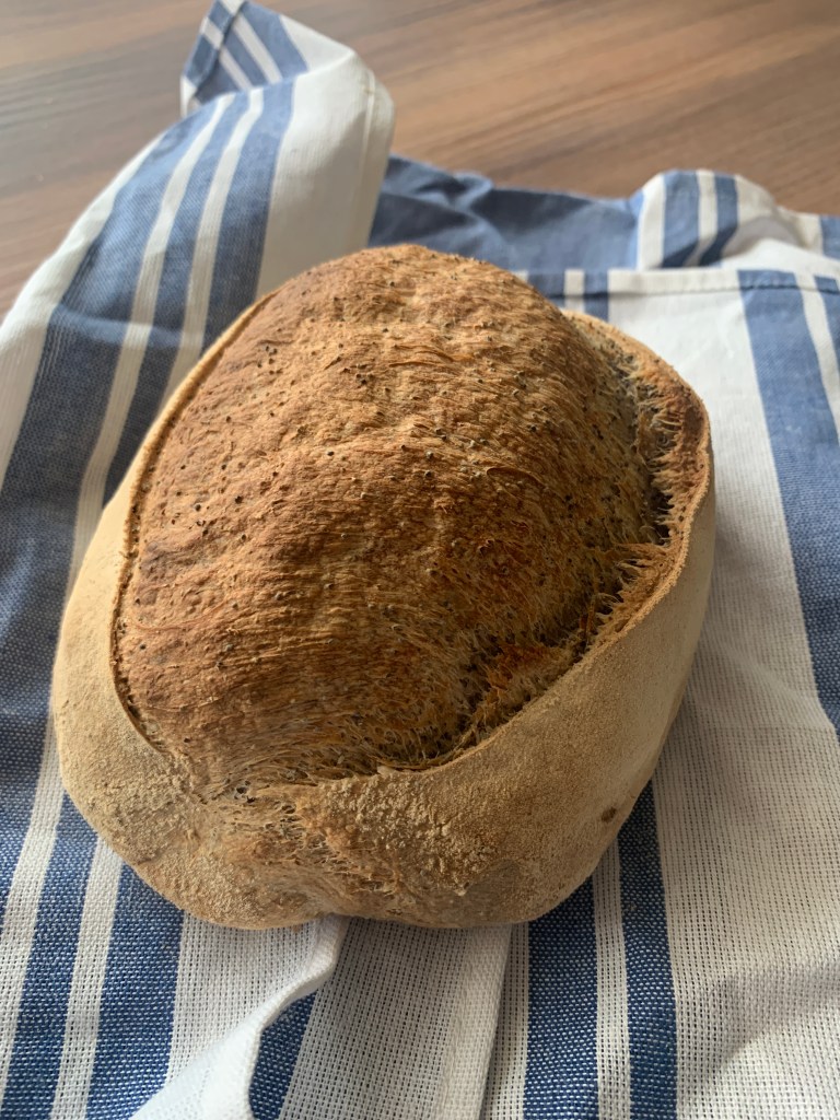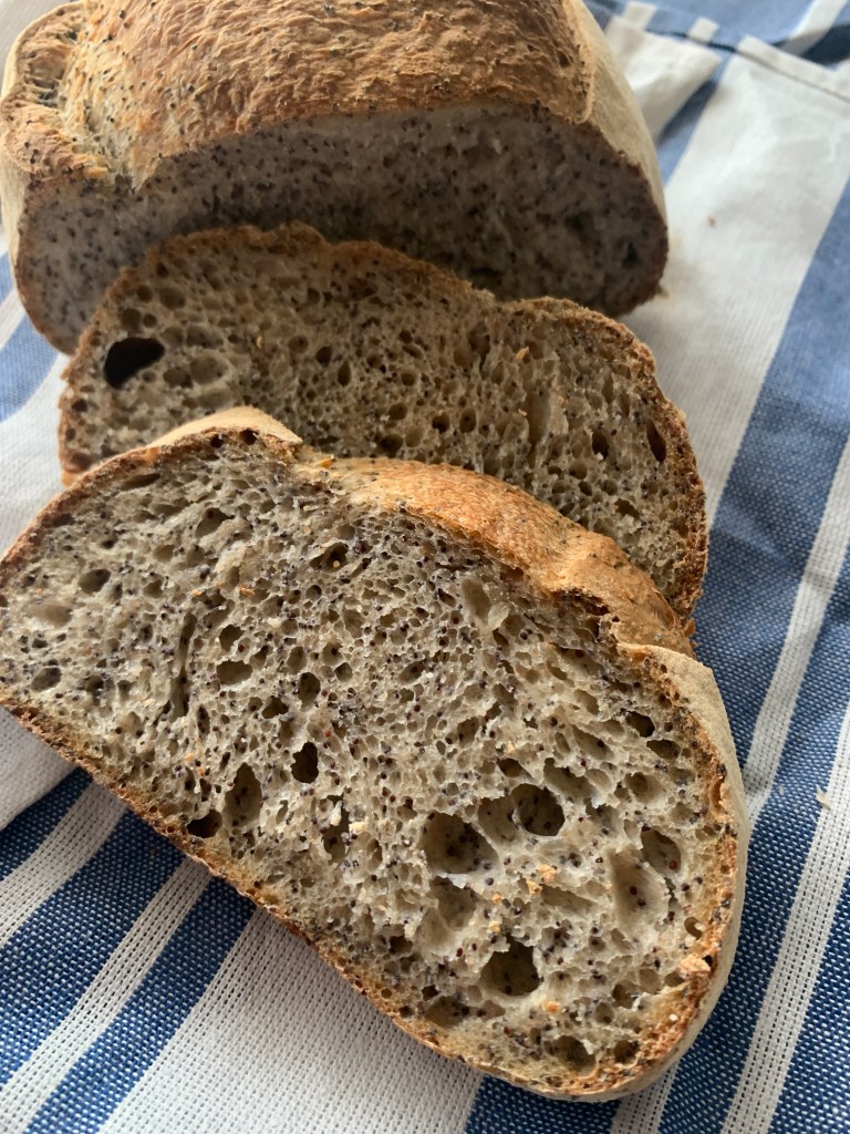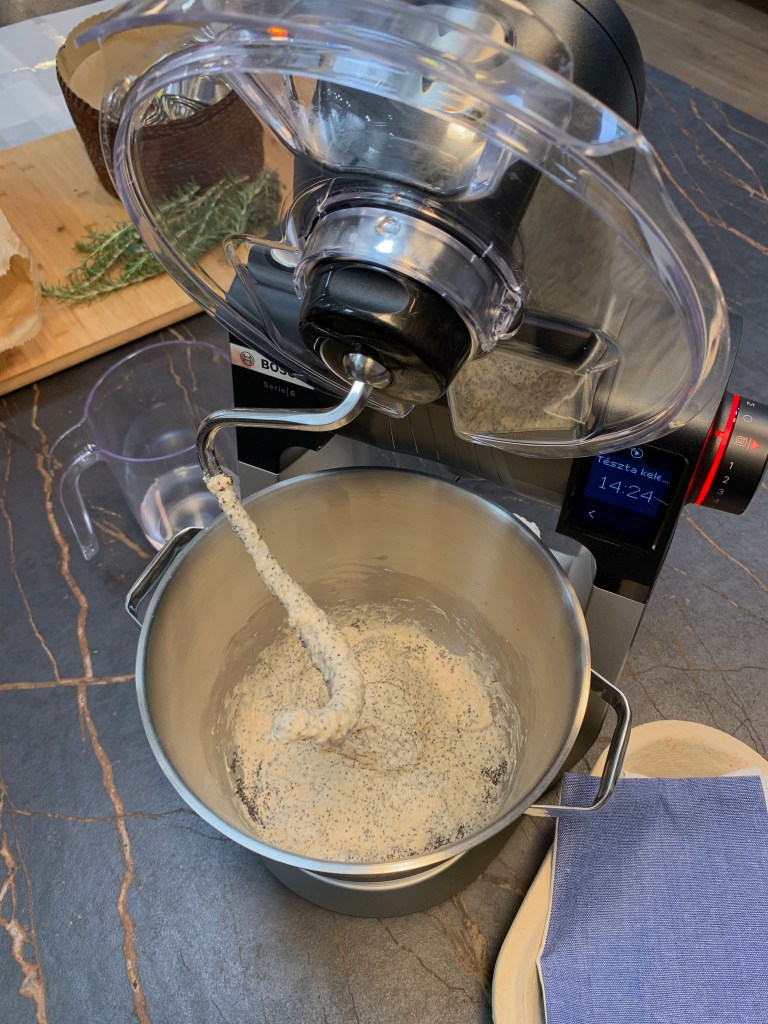 Miután kíváncsi lettem, hogy vajon mit csinál ez egy hidratáltabb kovászos tésztával, ugyanezen a programon dagasztottam egy mákos kovászos kenyeret.