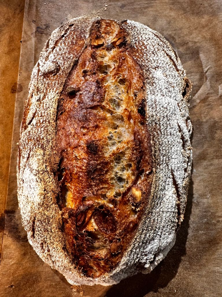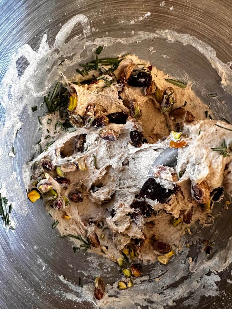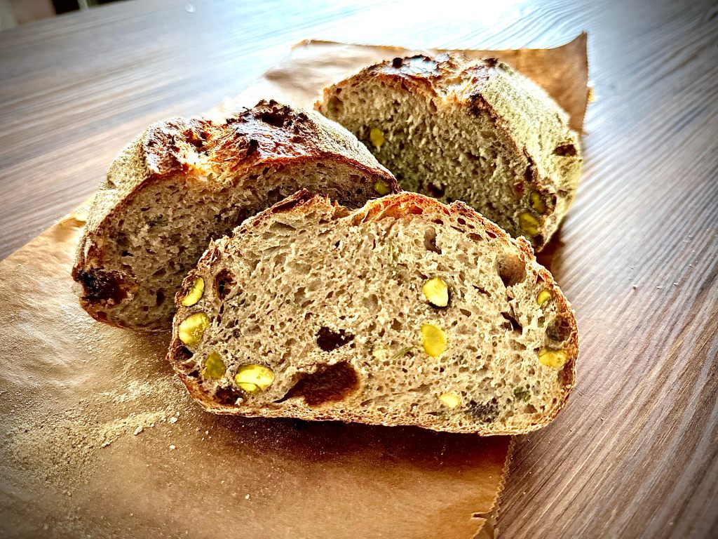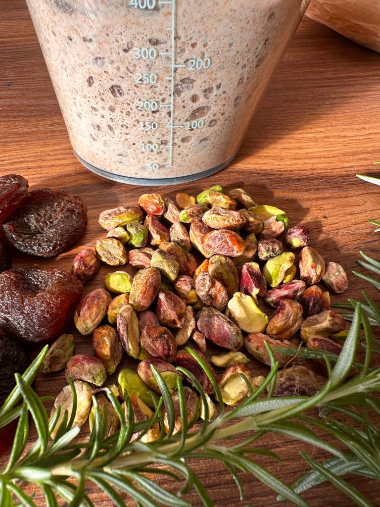 Aszalt barackos-pisztáciás rozmaringos kovászos kenyér